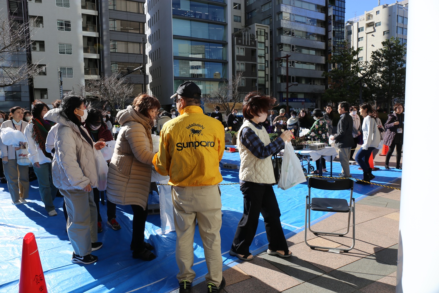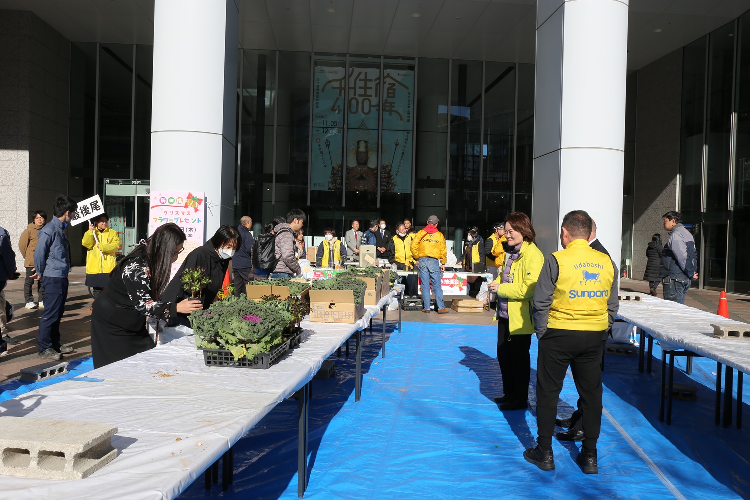 抽選で当たる賞品は、色鮮やかなポインセチアや美味しそうなホテルメトロポリタンエドモントとファリーヌキムラヤさんのパンセットや商店会賞などです。花鉢と賞品の二袋を手に下げ、嬉しそうにお帰りになる姿はいつ見ても良いものです✨